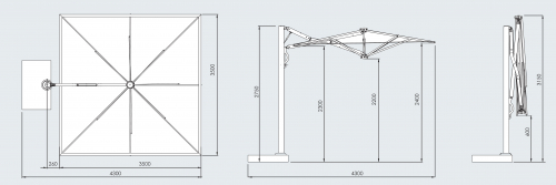 Больше не нужны механизмы и тросы для открытия зонта, данная новинка работает на газовом поршне. Легким нажатием кнопки зонт плавно открывается и закрывается. Кроме того, новая система открытия-закрытия позволяет не убирать из-под зонта мебель, зонт аккуратно придвигается к опоре и не нависает над мебелью.
