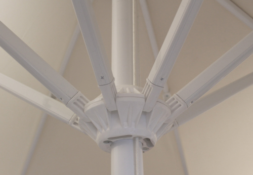 С системой веревочный полиспаст зонт открывается, потянув за веревку на корпусе зонта. После того, как веревка натянута, и купол полностью открыт, зонт фиксируется путем наматывания веревки на крючок на корпусе зонта.