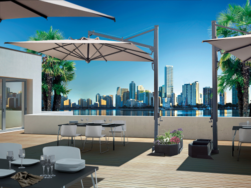Профессиональный зонт Galileo Dark - модель с обновленной выдвижной системой открытия-закрытия зонта, которая позволяет легко закрывать зонт, не передвигая мебель.