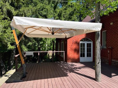 Palladio Braccio выпускается компанией Scolaro уже более 20 лет. За это время продано более тысячи моделей зонта Palladio Braccio во всем мире. Многие из этих зонтов по-прежнему работают, являясь доказательством надежности конструкции. Зонт Palladio Braccio теперь еще более надежный за счет усиления каркаса металлической конструкцией! Хотя внешне структура дерева остается неизменной, но это лишь имитация. Вы получаете результат - красота и эстетика натурального дерева и сила и прочность металла!