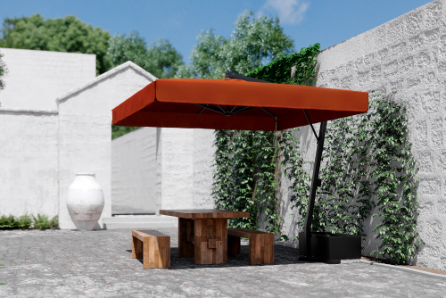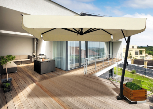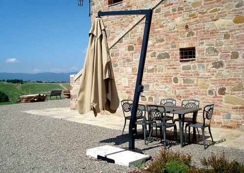 Профессиональный уличный зонт Venere с боковой опорой, который защитит от палящих лучей или летнего дождя и создаст приятную уютную атмосферу на заднем дворе загородного коттеджа, террасе кафе или ресторана, а также любой другой открытой площадке.