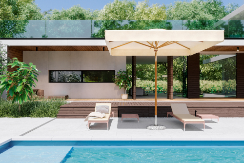 Профессиональный уличный зонт Dolomiti Wood Iroko с центральной опорой подойдет для затенения пространств различного назначения: как домашнего сада, так и летней площадки кафе.