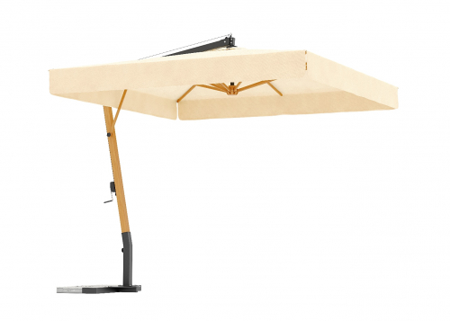 Вертикальная опора выполнена из дерева ироко с пропиткой, горизонтальная опора - из алюминия, купол может быть выполнен из натурального или окрашенного акрила, Tempotest Para или ПВХ. Благодаря конструкции из дерева и алюминия, а также порошковому покрытию, зонт устойчив к коррозии. Все ткани имеют высокую стойкость к выцветанию, что обеспечивает долгий срок службы.