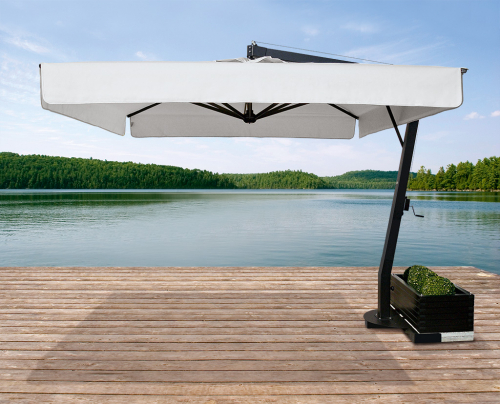 Профессиональный уличный зонт Saturno с боковой опорой, который защитит от палящих лучей или летнего дождя и создаст приятную уютную атмосферу на заднем дворе загородного коттеджа, террасе кафе или ресторана, а также любой другой открытой площадке.