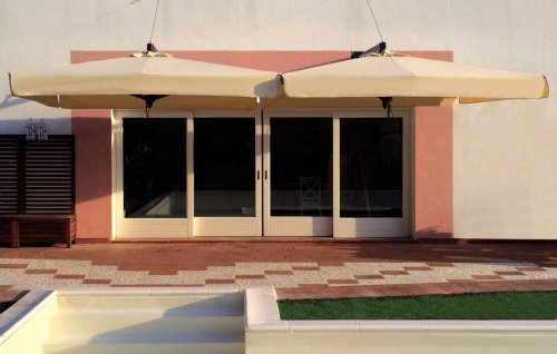 Итальянская фабрика OFV с 1983 года производит садовые зонты для кафе, баров, ресторанов, рекламные зонты, беседки, решетки из дерева и алюминия.