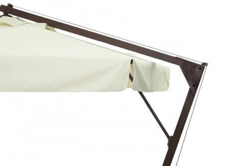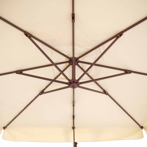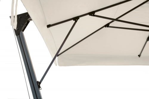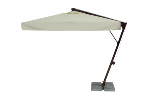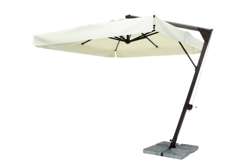 Banana - профессиональный зонт с боковой опорой из алюминия, что обеспечивает его высокую устойчивость. Он защитит от ярких солнечных лучей и создаст приятную затененную атмосферу в частных садах, открытых летних площадках кафе, баров и ресторанов, зоны возле бассейна.