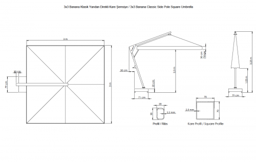 Наличие боковой опоры зонта гарантирует, что тень зонта используется более эффективно, чем с зонтами с центральной стойкой. Зонты Banana изготавливаются разных размеров и форм с учетом различных областей применения и размеров затеняемой площади. Зонты квадратной формы можно поставить в ряд, чтобы полностью закрыть зону затенения. Это предлагает вам очень гибкое и экономичное решение по сравнению с перголой или другими типами навесов.
