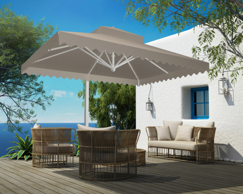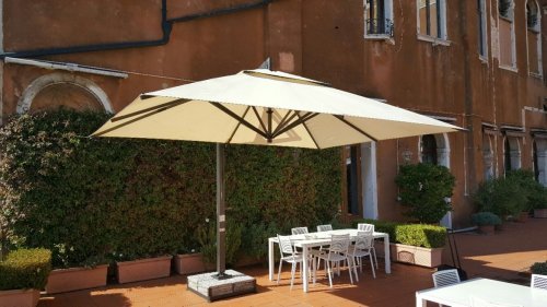 Venezia - это зонт от солнца с "двойной индивидуальностью". Массивный и харизматичный, когда открыт, сдержанный и скромный, когда закрыт. Зонт Venezia демонтрирует роскошь и элегантность. Зонты Venezia адаптированы для профессионального использования в ресторанах, отелях, барах, кафе и частных виллах.