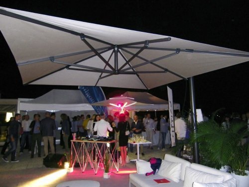 LED Lighting KIT - cистема светодиодного освещения с кабелями, проходящими внутри рамы зонта. Состоит из 4, 6 либо 8 светодиодных панелей из анодированного алюминия. По умолчанию - теплый свет 2700K, по запросу - холодный свет либо комплект RGB-ламп. Степень защиты IP65 - полная защита от проникновения пыли, защита от струй воды со всех направлений.