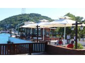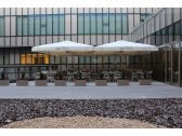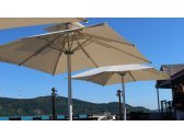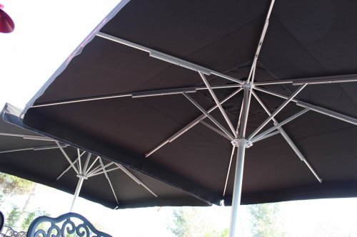 Зонт открывается и закрывается одной рукой и рассчитан на долгие годы службы. При закрытии купол заметно приподнимается. Благодаря такому устройству - телескопической системе - при открывании и закрывании купола не нужно выносить из-под него мебель. Это самое практичное решение для затенения уличных кафе и летних веранд ресторанов. Система коленчатого вала, спрятанная в опоре зонта, была усилена за долгие годы эксплуатации.