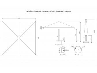 Телескопическая система открытия-закрытия зонта позволяет использовать модель в уличных кафе и ресторанах и при этом нет необходимости передвигать мебель под зонтом. При закрытии зонт приподнимается и закрывается. Зонт Lux Telescopic подходит для ресторанов и кафе, а также для садов и террас.