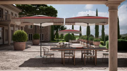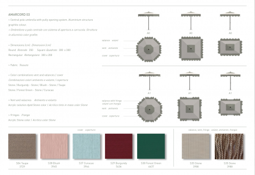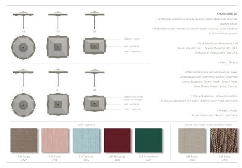 Amarcord - это семейство зонтиков, вдохновленных самыми классическими формами, способных гармонично сочетаться с исторической архитектурой и памятными пейзажами.