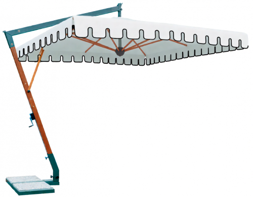 Torino Braccio - классическая модель с использованием натуральных материалов, которые делают зонт легким и удобным. Алюминиевая опора с отделкой под дерево улучшает рабочие характеристики без изменения внешнего вида. Профессиональный зонт с боковой опорой подойдет для создания тени в частных и коммерческих открытых пространствах.