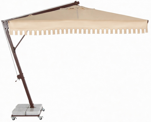 Наличие боковой опоры зонта гарантирует, что тень зонта используется более эффективно, чем с зонтами с центральной стойкой. Зонты Banana изготавливаются разных размеров и форм с учетом различных областей применения и размеров затеняемой площади. Зонты квадратной формы можно поставить в ряд, чтобы полностью закрыть зону затенения. Это предлагает вам очень гибкое и экономичное решение по сравнению с перголой или другими типами навесов.