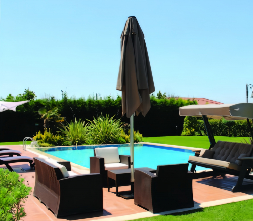 Одной из самых популярных моделей фабрики THEUMBRELA SEMSIYE EVI является роскошная телескопическая модель зонта Lux Telescopic Manuel, которая представляет собой наиболее точное изделие, отвечающее всем критериям зонтов для коммерческого использования. Круглые, квадратные и прямоугольные модели различных размеров и цветов с телескопической функцией затенения, которая позволяет открывать и закрывать зонт без потери элегантности. Это самый функциональный продукт, который можно использовать в уличных кафе и ресторанах, а также в садах и на террасах.