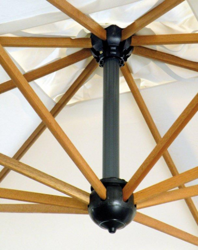 Torino Braccio - классическая модель с использованием натуральных материалов, которые делают зонт легким и удобным. Алюминиевая опора с отделкой под дерево улучшает рабочие характеристики без изменения внешнего вида. Профессиональный зонт с боковой опорой подойдет для создания тени в частных и коммерческих открытых пространствах.