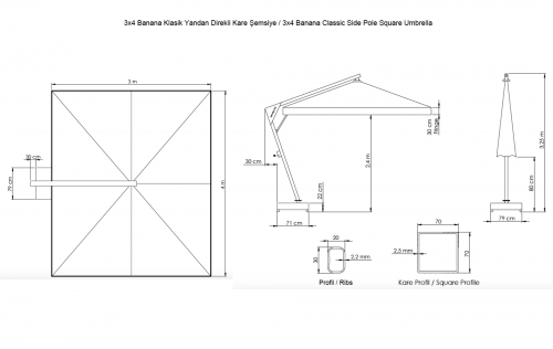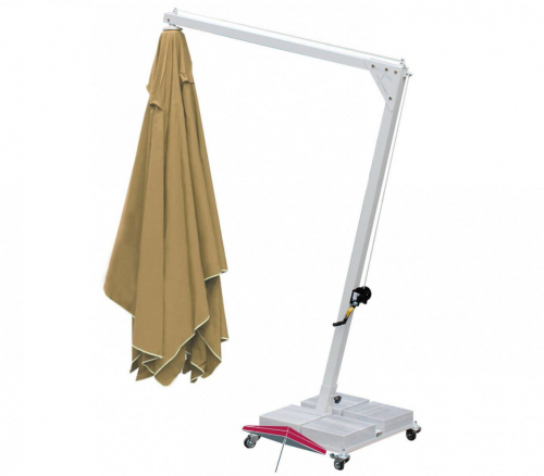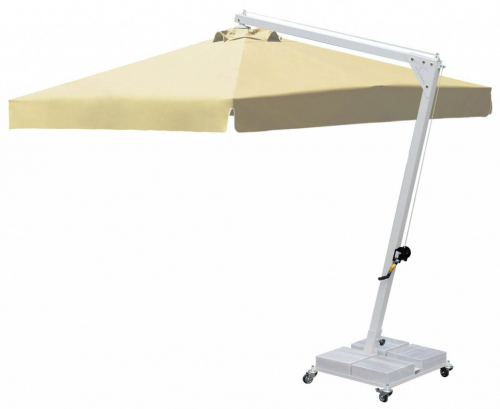 Banana - профессиональный зонт с боковой опорой из алюминия, что обеспечивает его высокую устойчивость. Он защитит от ярких солнечных лучей и создаст приятную затененную атмосферу в частных садах, открытых летних площадках кафе, баров и ресторанов, зоны возле бассейна.