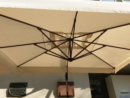 Наличие боковой опоры зонта гарантирует, что тень зонта используется более эффективно, чем с зонтами с центральной стойкой. Зонты Banana изготавливаются разных размеров и форм с учетом различных областей применения и размеров затеняемой площади. Зонты квадратной и прямоугольной формы можно поставить в ряд, чтобы полностью закрыть зону затенения. Это предлагает вам очень гибкое и экономичное решение по сравнению с перголой или другими типами навесов.