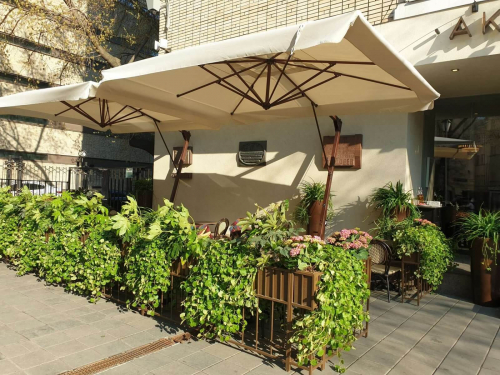 Хотя это корпоративный продукт, предпочитаемый кафе, ресторанами и отелями, однако, зонт Banana также украшает многие сады и террасы. Это очень востребованная модель по таким причинам, как практичность и эргономика, возможность открывать и закрывать, не мешая тем, кто находится под зонтом, а также простота транспортировки и перемещения благодаря утяжелительной базе с колесным тормозом.