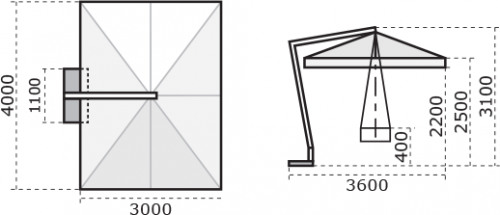 Pompei Braccio - элегантный зонт повышенной прочности с боковой опорой, идеально подходит для использования в уличных кафе и массовых местах отдыха. Подходит для использования на площадках возле бассейнов, балконах и террасах.