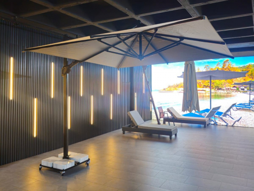 Banana Plus Premier - новейшая модель компании THEUMBRELA, сочетающая в себе высококачественные материалы, впечатляющие технологии и простое управление. Это особенный продукт для тех, кто ищет крутой дизайн, стильный внешний вид и функциональность среди зонтов с боковой опорой. Зонт легко открывается и закрывается при помощи рукоятки, а сам механизм блокируется для безопасности. Купол может подниматься под углом до 60°. Для того, чтобы закрыть или открыть зонт Banana Plus, не нужно двигать мебель под ним.