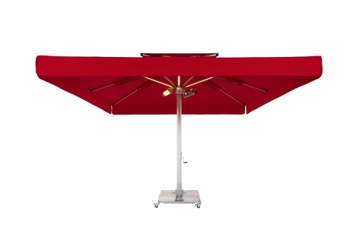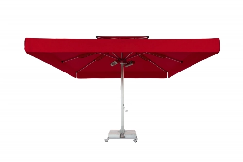 Mega Telescopic - профессиональный телескопический зонт с центральной опорой из алюминия Ø100 мм, которая обеспечивает высокую устойчивость. Модель идеально подходит для кафе и ресторанов, придает им роскошную атмосферу. Зонт обеспечивает большую площадь затенения благодаря своим размерам, а благодаря телескопической системе при открывании и закрывании купола, не нужно беспокоить посетителей. Телескопическая система открытия-закрытия зонта позволяет использовать модель в уличных кафе и ресторанах и при этом нет необходимости передвигать мебель под зонтом. При закрытии зонт приподнимается и закрывается. Система коленчатого вала, спрятанная в опоре зонта, была усилена за долгие годы эксплуатации.