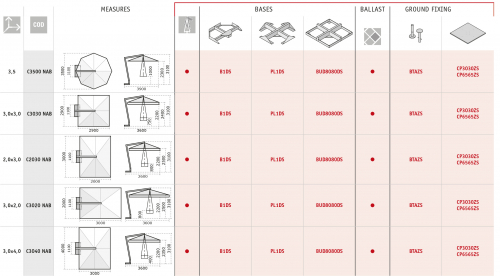 Таблица выбора утяжелительных баз для стабилизации зонта.