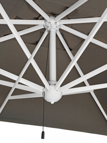 Rimini Braccio гармонично впишется в современные изысканные открытые пространства. Обновленная модель с полностью алюминиевым каркасом белого цвета прекрасно подойдет для открытых площадок кафе и ресторанов, лаунж-зон возле бассейна и частных садов.