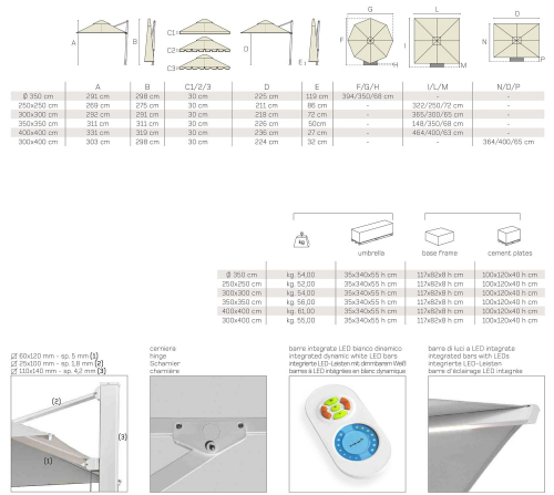 Отдельно приобретаются дополнительные элементы для зонтов: