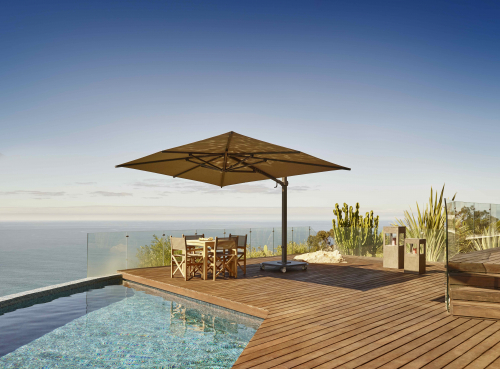 Несмотря на большой размер, зонт легко открывается с помощью ручной лебедки. Большой зонт с боковой опорой JCP.4 - это стильная идея для открытых площадок ресторанов, кафе, бассейнов.