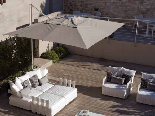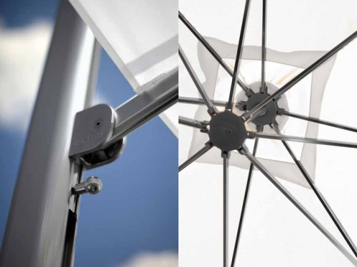 Отличительной чертой этого зонта является то, что Вы можете вращать купол, а так же менять градус наклона для более удобной защиты от солнца.