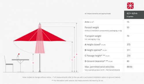 Theft Protection - Защита от кражи с помощью замка, который встроен в вариант установки. Два дополнительных цилиндрических замка в ручках предотвращают несанкционированное использование (открытие и закрытие) зонта.