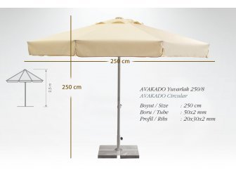 - круглый купол зонта оснащен механизмом наклона и поворота;