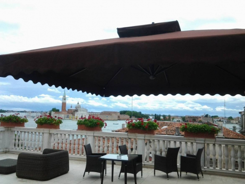 Venezia - это зонт от солнца с "двойной индивидуальностью". Массивный и харизматичный, когда открыт, сдержанный и скромный, когда закрыт. Зонт Venezia демонтрирует роскошь и элегантность. Зонты Venezia адаптированы для профессионального использования в ресторанах, отелях, барах, кафе и частных виллах.