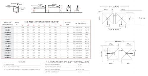 Crank Location - По запросу расположение ручной лебедки на внутренней стороне опоры (при варианте расположения зонта у стены).