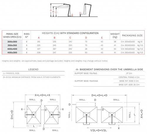 LED Lighting KIT - cистема светодиодного освещения с кабелями, проходящими внутри рамы зонта. Состоит из 4 либо 8 светодиодных панелей из анодированного алюминия. По умолчанию - теплый свет 2700K, по запросу - холодный свет либо комплект RGB-ламп. Степень защиты IP65 - полная защита от проникновения пыли, защита от струй воды со всех направлений.