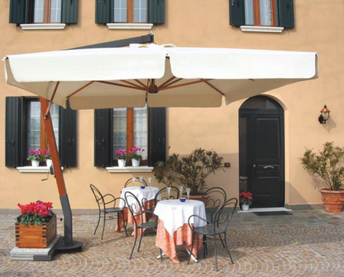 Профессиональный уличный зонт Vespucci с боковой опорой, который защитит от палящих лучей или летнего дождя и создаст приятную уютную атмосферу на заднем дворе загородного коттеджа, террасе кафе или ресторана, а также любой другой открытой площадке.