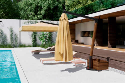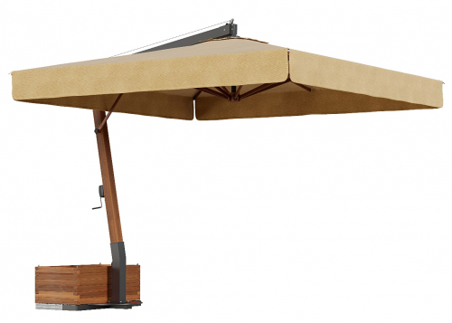 Вертикальная опора выполнена из дерева ироко с пропиткой, горизонтальная опора - из алюминия, купол может быть выполнен из натурального или окрашенного акрила, Tempotest Para или ПВХ. Благодаря конструкции из дерева и алюминия, а также порошковому покрытию, зонт устойчив к коррозии. Все ткани имеют высокую стойкость к выцветанию, что обеспечивает долгий срок службы.