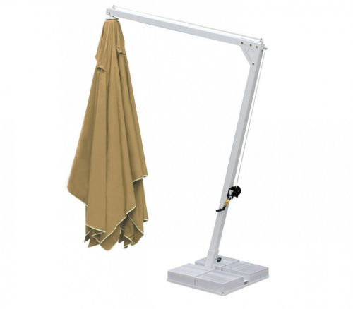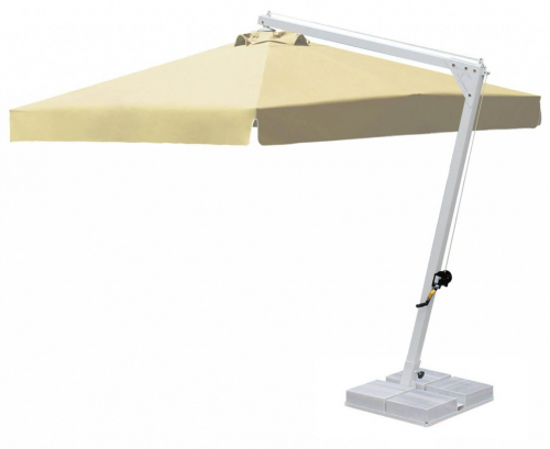 Banana - профессиональный зонт с боковой опорой из алюминия, что обеспечивает его высокую устойчивость. Он защитит от ярких солнечных лучей и создаст приятную затененную атмосферу в частных садах, открытых летних площадках кафе, баров и ресторанов, зоны возле бассейна.
