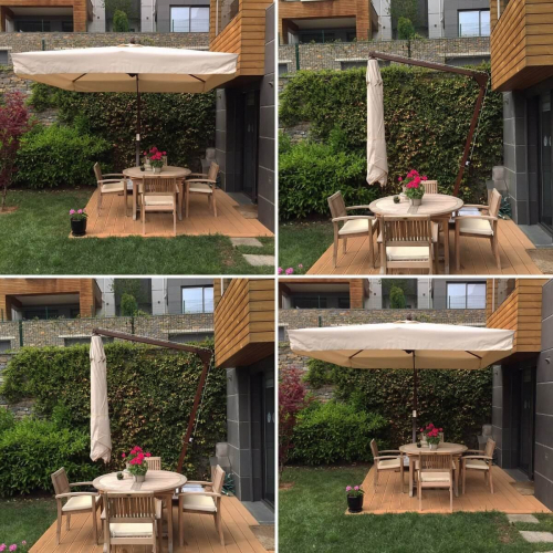 Хотя это корпоративный продукт, предпочитаемый кафе, ресторанами и отелями, однако, зонт Banana также украшает многие сады и террасы. Это очень востребованная модель по таким причинам, как практичность и эргономика, возможность открывать и закрывать, не мешая тем, кто находится под зонтом, а также простота транспортировки и перемещения благодаря утяжелительной базе с колесным тормозом.