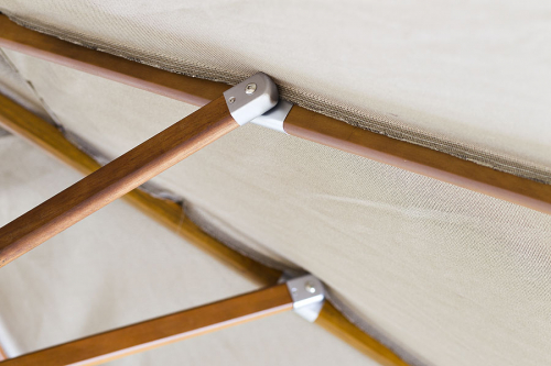 Тент изготовлен из качественной водоотталкивающей ткани spunpoly плотностью 310 г/м2, устойчивой к выгоранию на солнце.