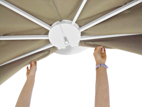 Каркас зонта выполнен из окрашенного алюминия, купол может быть выполнен из натурального или окрашенного акрила, Tempotest Para. Благодаря конструкции из алюминия и порошковому покрытию зонт устойчив к коррозии и не боится морской соли. Все ткани имеют высокую стойкость к выцветанию, что обеспечивает долгий срок службы.