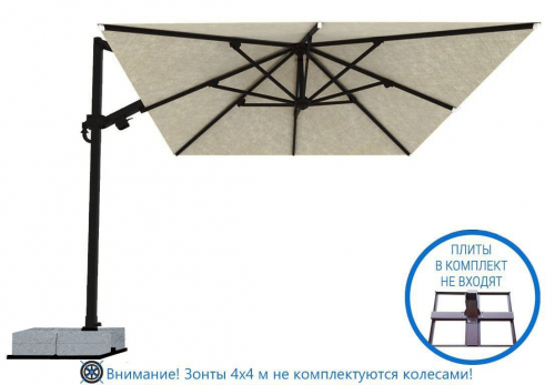 Зонт легко открывается и закрывается при помощи рукоятки, а сам механизм блокируется для безопасности. Купол может подниматься под углом до 60°. Для того, чтобы закрыть или открыть зонт Banana Plus, не нужно двигать мебель под ним.