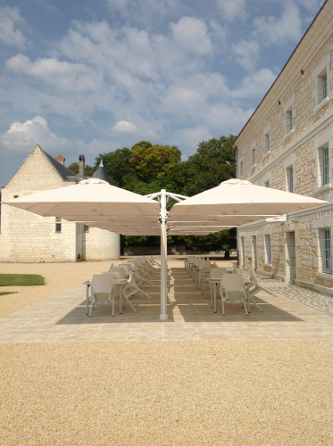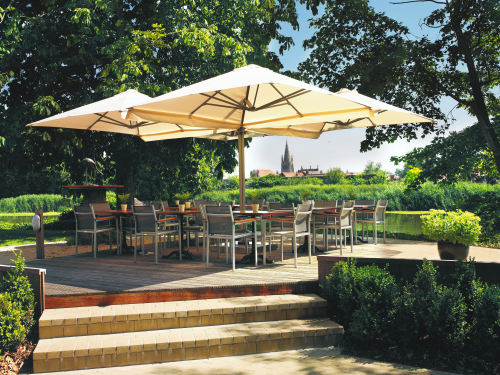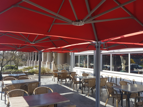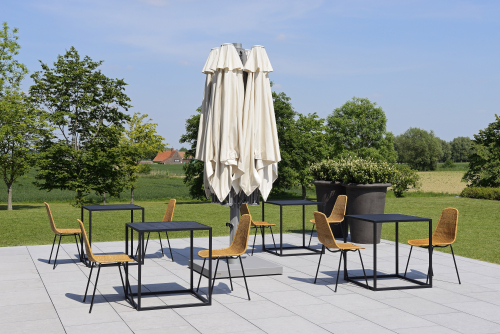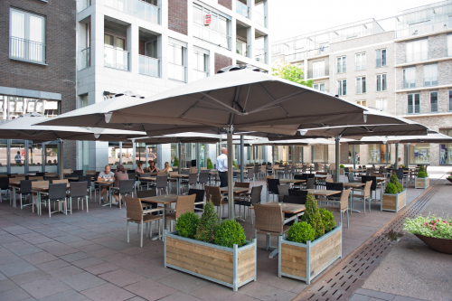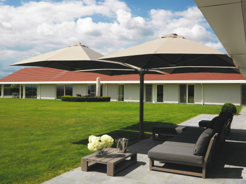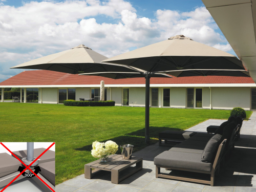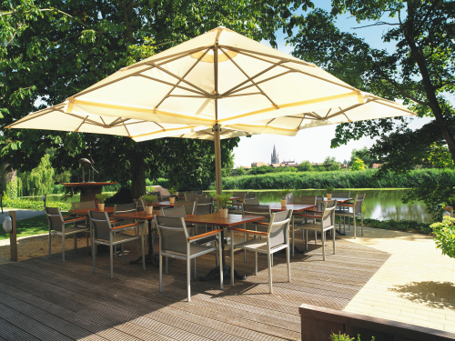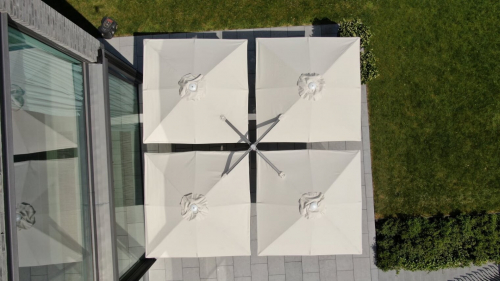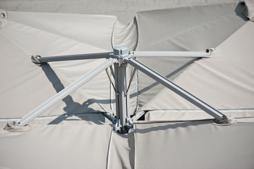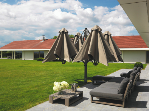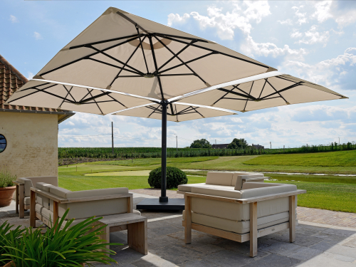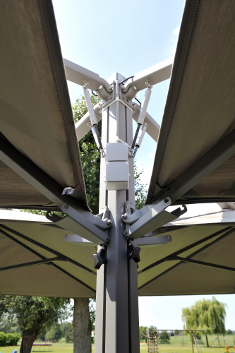 Профессиональный четырехкупольный зонт P6 Quattro - идеальное решение для затенения открытого пространства, соответствующее вашим потребностям. Стильный дизайн сразу привлекает внимание каждого посетителя, а управление максимально простое, благодаря запатентованной системе "One Move System". Их можно открывать и закрывать одним скользящим движением, что очень удобно. Независимо от того, насколько прочны и надежны зонты, не потребуется много сил, чтобы управлять ими легко и быстро. Также вам не придется беспокоиться о перемещении стульев и столов - зонты открываются и закрываются над мебелью.