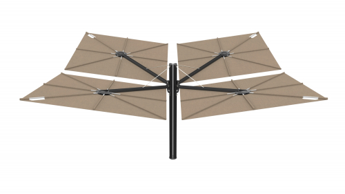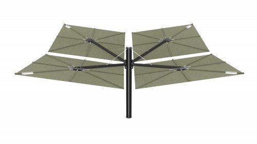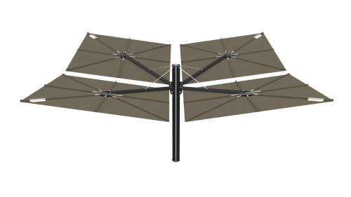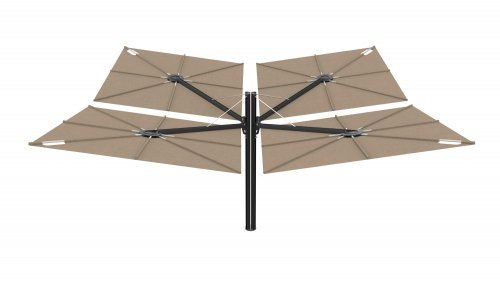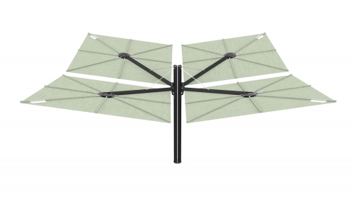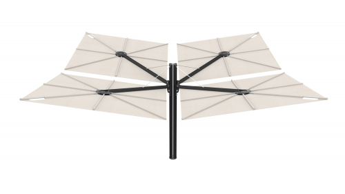 Благодаря своей уникальной форме дизайнерский зонт Spectra предлагает бесконечное разнообразие позиций. Этот потрясающий создатель тени сочетает в себе красоту плоского дизайна с функциональностью вентиляционной системы. Благодаря этой системе зонт закрывается горизонтально, а не вертикально. Уникальная и современная концепция. Spectra Multi обеспечивает в четыре раза больше тени на открытом пространстве, т.к. имеет четыре квадратных купола размером 2500х2500 мм.