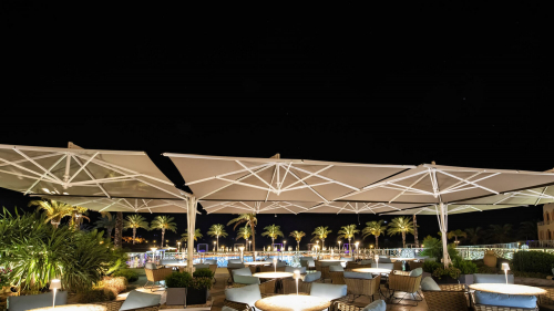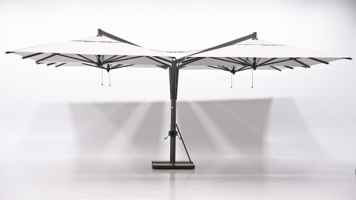 Максимальная четкость форм и размеров благодаря центральной опоре, на которой установлены четыре купола зонта Quadruplo. Специальный усиленный каркас делает модель идеальным изделием для затенения больших пространств. Каждый зонт имеет независимый механизм открытия, и все зонты можно закрыть даже при наличии мебели под ними. Спицы заменяются по отдельности без необходимости разборки всей конструкции, а ткань навеса легко снимается для обслуживания или замены. Фурнитура из нержавеющей стали. Алюминиевый каркас, детали из нержавеющей стали. Стабилизатор обеспечивает более высокую стабильность зонта в очень ветреных условиях. Все продукты FIM разработаны и изготовлены в Италии с использованием лучших материалов для наружного применения, чтобы гарантировать исключительную долговечность даже в самых жестких условиях окружающей среды.