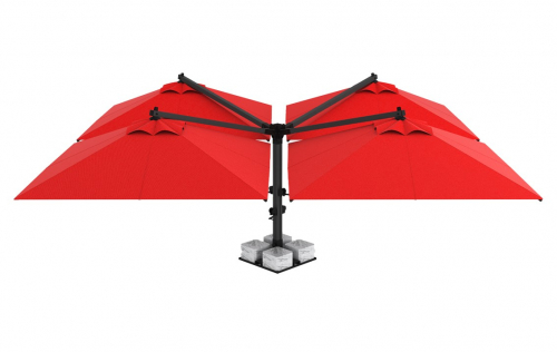 Зонт сочетает в себе высококачественные материалы, впечатляющие технологии и простое управление. Благодаря утяжелительной базе обеспечивается достаточный баланс и давление. Зонты можно открывать независимо друг от друга благодаря лебедкам на средней стойке. Качество вашего пространства будет повышено с помощью зонта Banana Quadro, который является очень эстетичным и ярким решением для самых больших пространств.