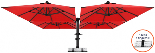 Banana Quadro - это большой четырехкуполный зонт компании THEUMBRELA, который предлагает максимальное затенение. Одна опора и четыре купола, обеспечивают затененную уютную атмосферу на любых открытых площадках. Алюминиевая конструкция, европейская ткань и утяжелительная база гарантируют простое использование.