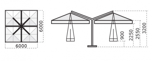 Alu Poker Starwhite состоит из 4-х отдельных зонтов, закрепленных на одной центральной опоре. Модель - элегантный образец дизайна с особым вниманием к деталям и отделке. Многокупольный зонт подходит для затенения больших пространств: на летних площадках кафе, баров, ресторанов, в парках и других общественных пространствах, при этом занимает минимум площади.