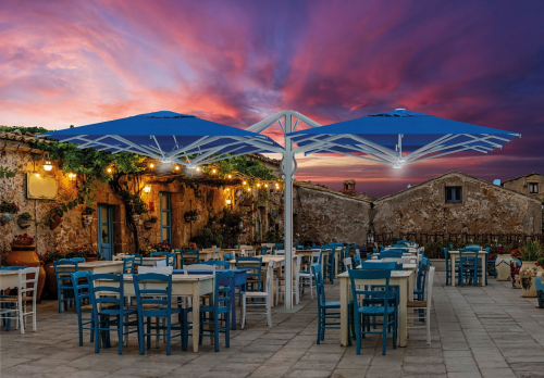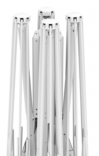 Серия Galaxia Quattro StarWhite - это эволюция зонта Astro. Алюминиевый каркас выполнен с эпоксидным покрытием антрацитового или белого цвета. Эта модель - отличное решение для больших открытых пространств. Выдвижной механизм обеспечивает возможность открывать и закрывать куполы над столами и стульями без перемещения мебели.
